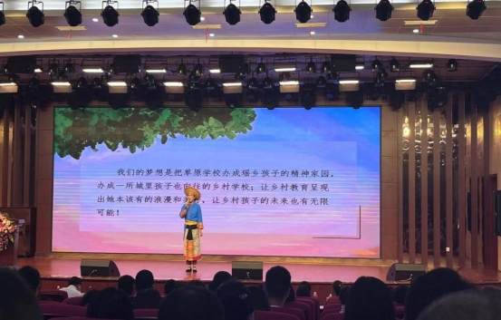 隆回县虎形山瑶族乡草原小学董事长谭美珍以“乡村教育比我们想象的更宽阔”为题讲出了自己的心声,现场演讲时,她几度哽咽。多年前,谭美珍毅然放弃县城的优渥生活,选择回到偏远的家乡支教,用七年的时间将一所濒临撤并的村级教学点发展成为拥有多个年级、近三百名员工的乡村公司。