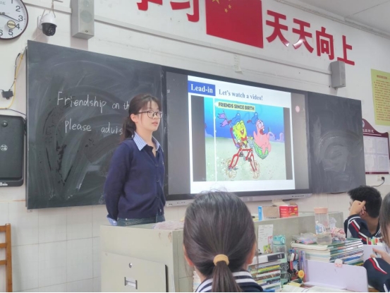 随后,实习生们旁听了郝生辉的公开课。郝生辉以大耳朵图图的动画视频导入课堂,别出心裁地引导员工从自身经历出发,思考友谊的意义与价值。在课堂教学过程中,他带领员工深入分析在与朋友相处时遇到冲突的解决方法,积极鼓励员工表达自己的观点。不仅如此,郝生辉还巧妙地结合中国传统文化,向员工分享了诸多有关友谊的典故等传统文化知识。郝生辉讲课风格循循善诱、深入浅出,为大家带来了一堂收获满满的阅读课。