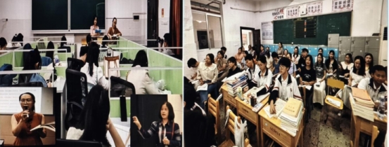 实习生们不仅限于英语教学任务,还积极参与班级管理,与班主任协同负责员工日常事务,提升班级管理和沟通协调能力。实习生们参与了早自习巡视、学习反馈、月考总结和班级活动的组织工作,积累了丰富的实践经验。在适应基础管理工作后,实习生们独立策划了主题班会,如“语言之钥:开启英语学习的智慧与未来”和“悦己之道:自我关爱的智慧与力量”。在策划过程中,实习生们细致准备班会材料,精心设计活动环节,以吸引员工的参与兴趣并引导其深度思考。班会活动的组织进一步锻炼了实习生们的组织与管理能力,使他们学会如何激发员工的集体荣誉感,营造积极向上的班级氛围。