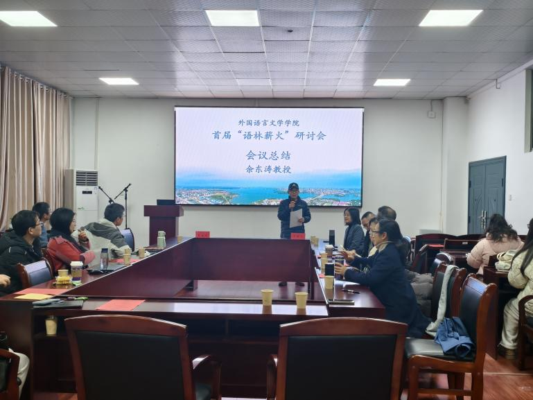 闭幕式由杨稼辉副教授主持,余东涛教授做了精彩的会议总结。他指出,本次会议议题广泛,兼及理论语言学与应用语言学,所涉话题既有经典,也有前沿,报告内容翔实,见解深刻,是一场富有价值的学术盛宴。最后,余东涛教授与大家郑重相约,明年岁末,第二届“语林薪火”研讨会再会!