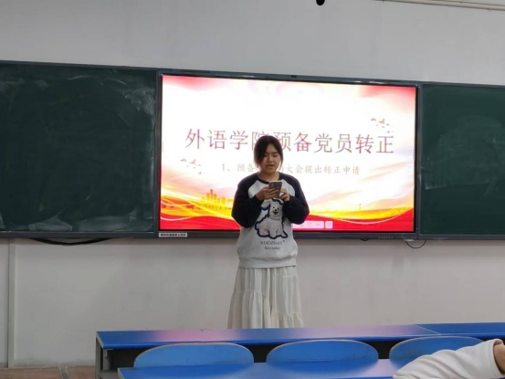 预备党员正在向大会提出转正申请