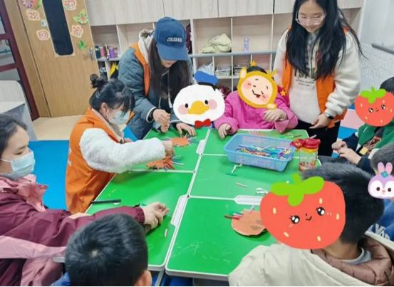 志愿者们和小朋友们一起做手工