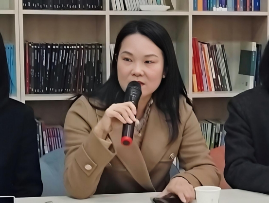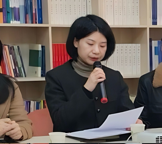 符婷宣读新党员名单。随后,王敏、符婷和陈冰给新党员佩戴党徽,并向他们表示祝贺。