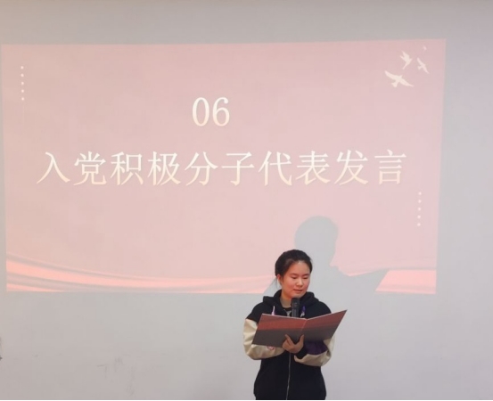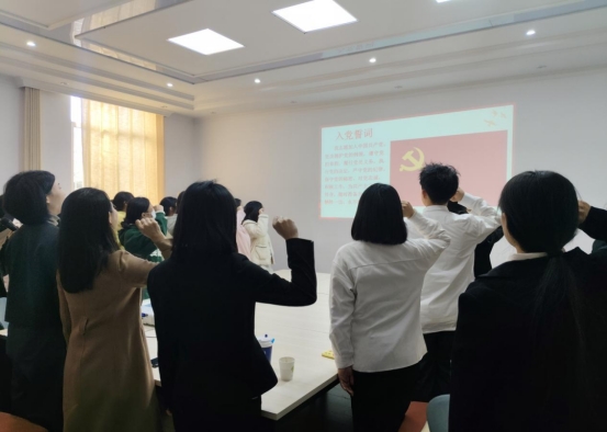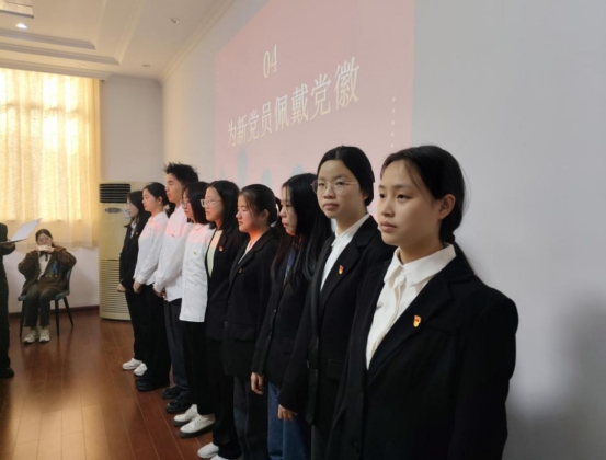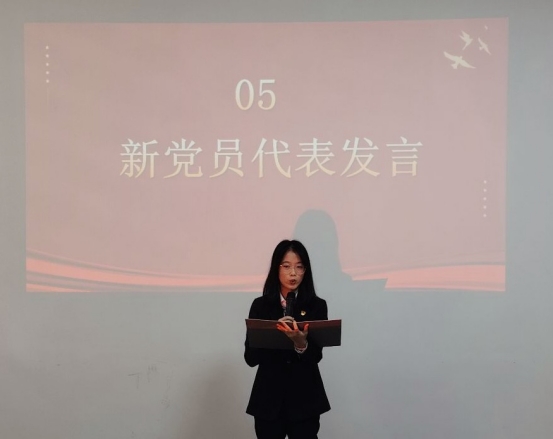 新党员们在陈冰的带领下向党旗庄严宣誓,老党员重温入党誓词。随后新党员代表张萍芝和入党积极分子代表黄丹妮先后发言,分享自己的个人经历和感悟。