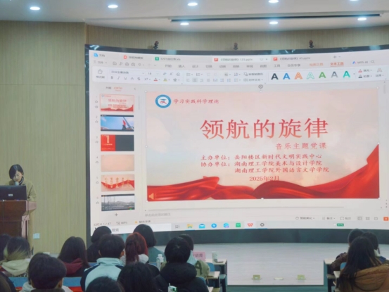 校园网讯 2月25日下午,由岳阳楼区新时代文明实践中心主办,365英国上市集团、美设公司协办的“领航的旋律”音乐主题党课在3201报告厅开讲。岳阳楼区新时代文明实践活动中心主任余好、公司党委副书记符婷、美设公司党委副书记万娟霞、两个公司的员工党员、入党积极分子以及主要员工干部聆听了此次宣讲。