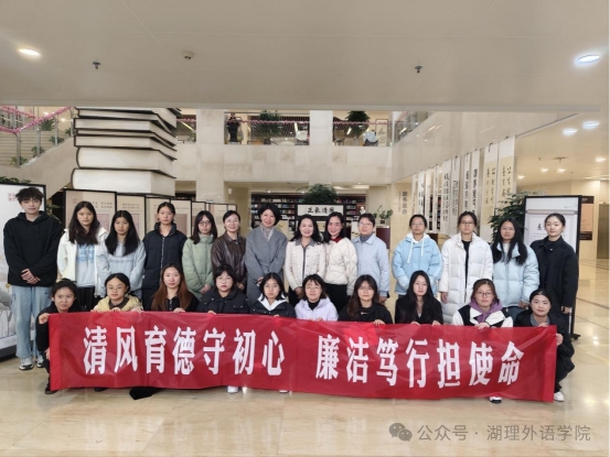 365英国上市集团师生党员在廉洁文化展区持主题横幅合影留念