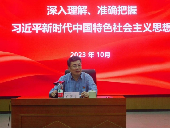 卢先明书记围绕“如何深入理解、准确把握习近平新时代中国特色社会主义思想”这一主题展开阐释。卢先明书记从理论框架体系、时间空间维度、方法论等方面对习近平新时代中国特色社会主义思想进行了深入剖析,提到“十个明确”、“十四个坚持”、“十三个方面成就”、“六个必须坚持”,带领同学们深入学习、准确领会其基本观点。联系国际国内形势,卢先明从疫情下中国共产党的担当出发,从中美贸易战中国的态度出发,从俄乌战争下中国的立场出发,从中国两个百年奋斗目标出发,充分论证了我们为什么要坚持用习近平新时代中国特色社会主义思想武装头脑。