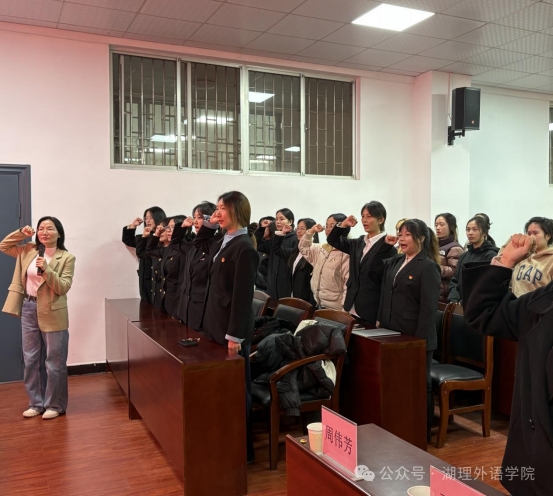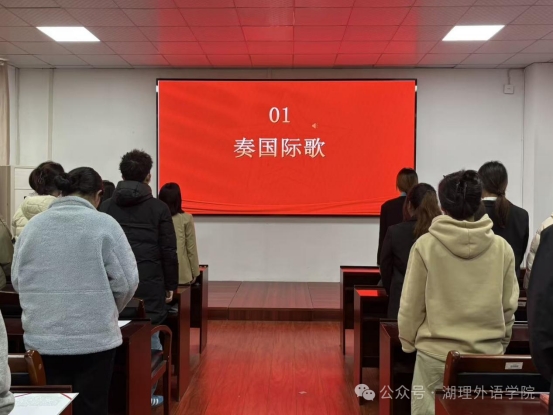 宣誓大会在庄严的《国际歌》中拉开序幕,全体人员肃立致敬,激昂的旋律回荡在报告厅内,传递着坚定的理想信念。
