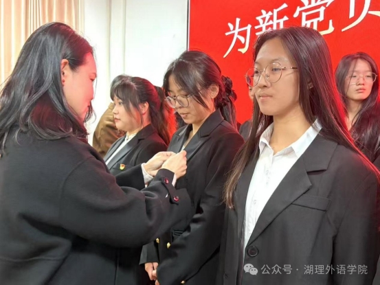 新党员佩戴上党徽