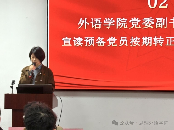 最后,公司党委书记王敏为大会作总结讲话。她向新党员表示祝贺,同时寄语全体党员:要牢记入党初心,以理论武装筑牢思想根基,以专业学习练就过硬本领,以实际行动践行党员使命,在青春赛道上展现外语学子的责任与担当。