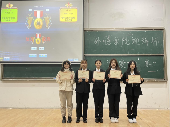 最终,经评委打分,反方英语21-5BF获得了本场比赛的胜利,正方四辩谭思艺同学凭借其优异的表现获得最佳辩手称号。