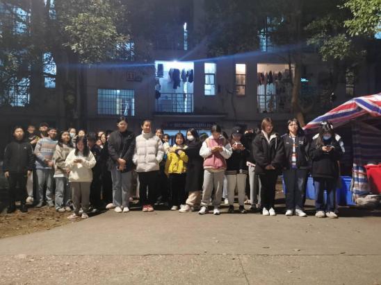 寝室长们在11栋楼下集合分配任务