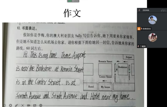 为了规范小朋友写英语作文的格式,提升英语写作能力,志愿者以小朋友写过的一篇作文为例,系统地讲述了英文信该怎么写,并提醒小朋友注意落款时首字母需大写。