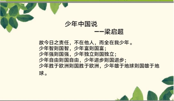 14日早读,志愿者带小朋友们一起朗读了《少年中国说》,用激昂澎拜的声音开启了一天的课程。