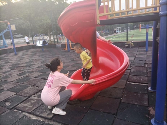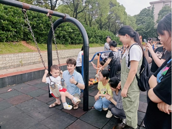 但志愿者以亲切温和的态度和语言慢慢融入其中,渐渐地,小朋友愿意向志愿者敞开心扉,也展示出了活泼可爱的一面,加入到做游戏的队伍中。大家一起玩“老鹰捉小鸡”、荡秋千、滑滑梯等,欢声笑语充满了广场,不禁引来过路行人的目光。天色渐晚,小朋友们笑意盈盈,依依不舍的送志愿者们到门口,挥手告别。