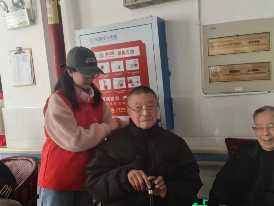 志愿者为老人按摩