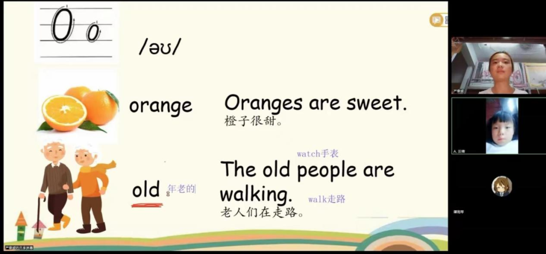在小班的教学过程当中,志愿者悉心指导,将26个字母的知识通过笔顺、单词、图片、句子、视频的形式呈现出来,孩子们被有趣的知识深深吸引,课堂氛围活跃而轻松。尤其是课件当中对于少儿影视角色图片的引用激起了孩子们巨大的兴趣,使得记忆单词的过程变得轻松而愉快。在课间休息时间,为了加深对小朋友的了解,志愿者积极与小朋友们相互分享生活趣事,对孩子们的性格也有了初步了解。
