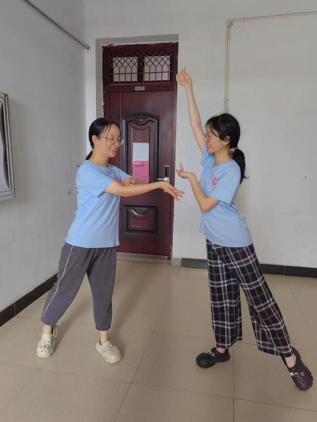 经过激烈的讨论后,志愿者们最终选择以跳舞、唱歌、讲故事为最后一天的汇报表演节目内容。接下来,志愿者们进行了紧张有序的节目排练。伴随着欢快柔和的曲调,明快活力的节奏,志愿者们沉浸在歌曲的排练之中,满怀笑意地哼唱着歌曲;徐徐地挥动着手臂,轻盈地扭动着身姿,挂着甜甜的笑容,志愿者们乐此不疲地练习舞蹈动作。在节目排练过程中,志愿者们始终都精神抖擞,热情如一,认真练习着每一句歌词,每一个动作,将每一份爱意藏于节目中。