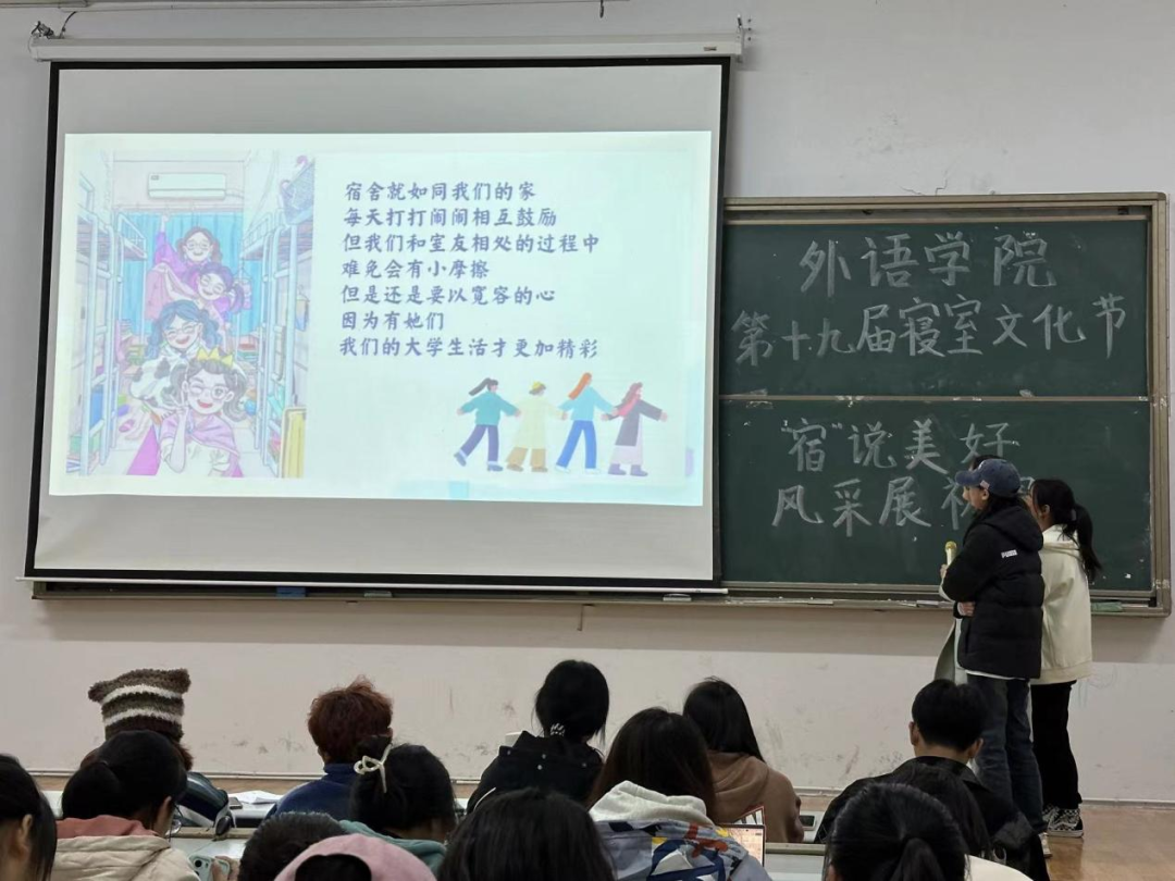 在本次比赛中,参赛选手们有序地上台展示各自的寝室风采,内容丰富,形式多样。参赛选手们以精美的ppt、图片及视频,讲述了寝室的日常故事,绘声绘色地将寝室风采及成员间的友谊展露出来。同时,参赛选手们进行才艺展示,活跃了现场的氛围。各个寝室间的故事与友谊充分感染了现场观众,此次比赛在轻松欢乐的气氛中拉下帷幕。