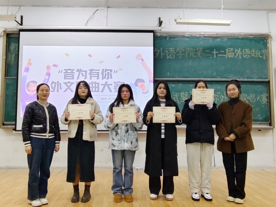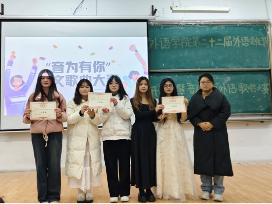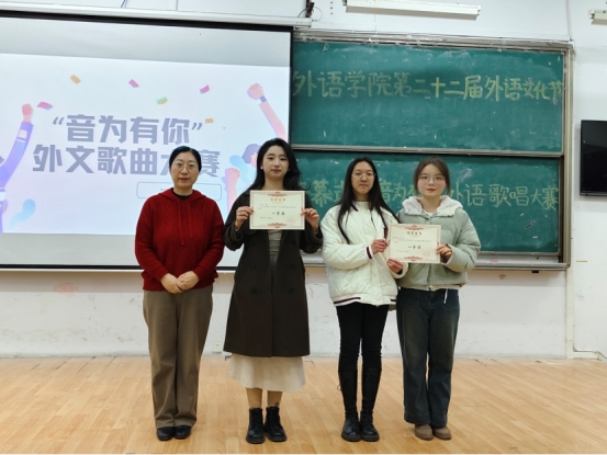 比赛最后,根据比赛最后实际得分,评选出一、二、三等奖得主。一等奖获得者为易晓蕾和张婷(《At Least》),任新月(《I Don’t Wanna Be You Anymore》),由石红芳上台颁奖;二等奖获得者为皮佳欣(《Baby》),郭艳和颜嘉惠(《Try》),刘思梅和严意媛(《Wonderful U》),由殷成韵上台颁奖;三等奖获得者为童慧(《The Loneliest Girl》),石嘉敏和胡尚林(《Crystal Ball》),郭蕾、潘讯喜和颜付蓉(《이쁘다니까》),何湘、徐熙桐、王思蕴和陈甸甸(《My Love》),由周伟芳、陈冰上台颁奖。此番奖励颁发,是对参赛者的肯定与支持,极大增强了外院学子勇敢展现自我才华的自信心。