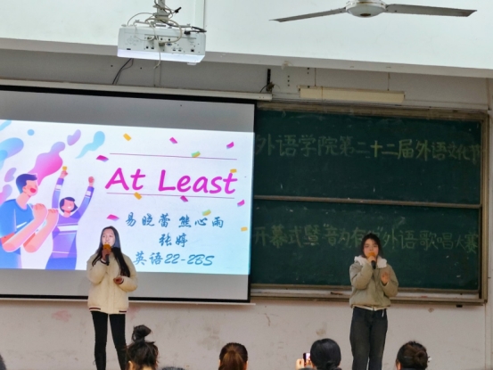 比赛伊始,观众以热烈的掌声欢迎评委们的到来。主持人介绍完比赛流程与评分规则后,比赛正式开始。选手们依次上台演唱歌曲,表演曲目既有情感丰富、舒展悠长的《At Least》,又有生动活泼的《Baby》。选手们各显身手,用动听的歌声和优秀的舞台表现,为观众们带来不同凡响的视听盛宴,使台下观众沉浸在优美的旋律之中,感受外语歌唱的魅力。