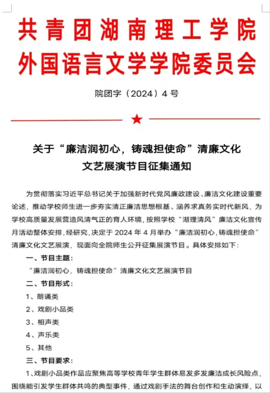关于“廉洁润初心,铸魂担使命”清廉文化文艺展演节目征集通知