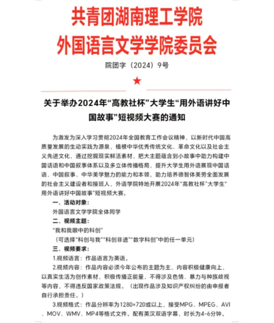 首页 员工工作 关于举办2024年“高教社杯”老员工“用外语讲好中国故事”短视频大赛的通知 2024年04月06日 11:09 点击:[] 关于举办2024年“高教社杯”老员工“用外语讲好中国故事”短视频大赛的通知