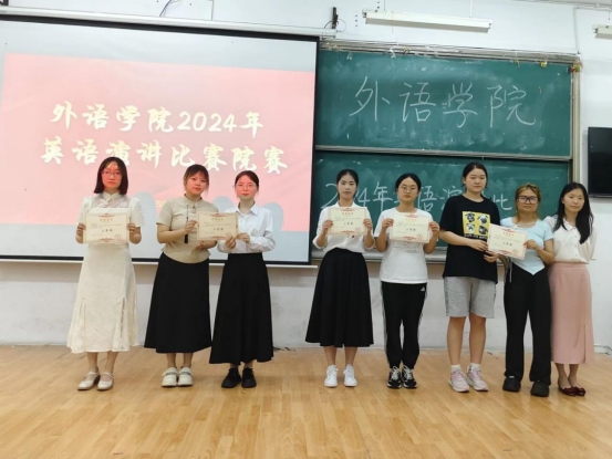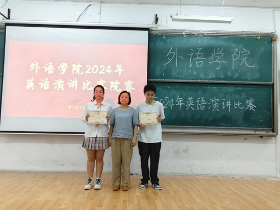 在激烈的角逐后,主持人宣布了选手得分和比赛结果,评委老师为获奖选手颁发奖状并与获奖选手合影留念。获得一等奖的选手以其出色的表现赢得了评委和观众的一致好评。一等奖获得者的演讲内容深刻、语言流畅、表达自然,充分展现了其良好的英语水平和较高的综合素养。