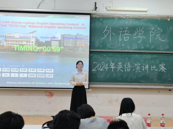 本次演讲比赛分为三个环节:第一轮演讲、问答环节、即兴演讲环节。在第一个环节中,选手们发表自己预先准备好的演讲,时长为三分十五秒;随后评委老师根据选手的演讲话题提出问题并由选手进行解答;最后再由评委老师提出问题,选手根据问题发表限时两分钟的即兴演讲。比赛中,选手们纷纷展现出了自己的风采和实力。他们用英语表达着自己的思想和感情,传递着积极向上的价值观,让在场的观众们感受到了英语的魅力。比赛结束后,吴辉老师发表讲话,她表达了对参赛选手和到场观众的感谢,并提出殷切期望,她希望通过此次比赛,选手们能积累经验,更好地进行自我提升,观众们也能从中收获些许知识。