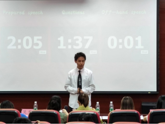比赛在热烈的气氛中拉开帷幕。本次演讲比赛分为三个环节:第一轮演讲、问答环节、即兴演讲环节。在第一个环节中,选手们发表自己预先准备好的演讲,时长为三分十五秒;随后评委老师根据选手的演讲话题提出问题并由选手进行解答;最后再由评委老师提出问题,选手根据问题发表限时两分钟的即兴演讲。选手们用流利的英语阐述自己的观点和见解。他们的演讲内容丰富多彩,既有关于个人成长的故事,也有对演讲相关主题的深入探讨。观众们被选手们的精彩表现深深吸引,不时爆发出热烈的掌声。