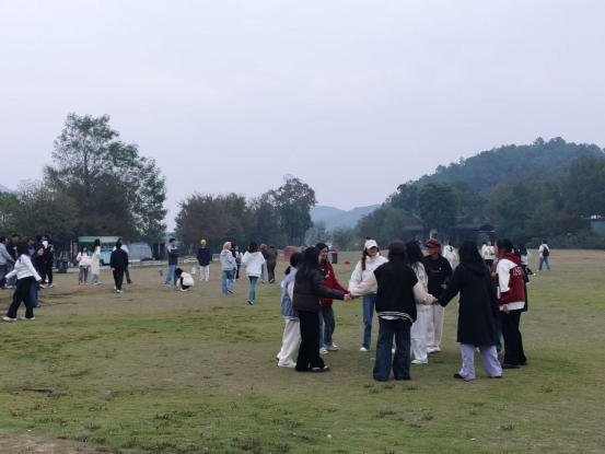 经过几个小时的徒步行进,团学分会成员终于抵达了终点——大烟囱露营基地。在这里,成员们先进行了短暂的休息调整,围坐在一起向其他成员分享着零食,讲述着生活趣事。在休息片刻后,团学分会成员组织了多个游戏。“闹钟炸弹”进一步增进了成员之间的了解,增强团队合作和情感交流。“抓人游戏”则锻炼了团学分会成员的身体素质,更提升了团队协作能力。“一二三木头人”充满了趣味性与挑战性,增进了彼此之间的默契和信任。游戏结束后,大家纷纷合照留念。