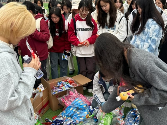 在团建活动正式开始之前,团学分会成员在田径场上集合并发放零食,为即将到来的远足补充能量。操场上一时间欢声笑语不断,轻松愉快的氛围迅速弥漫开来。