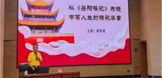 作为活动亮点之一,岳州讲坛同期开讲。国家一级作家黄军建以千古名篇《岳阳楼记》为引,深入剖析“先天下之忧而忧,后天下之乐而乐”的精神内核,结合生动案例,深入浅出地阐释如何从经典中汲取智慧,书写精彩人生。他号召读者以传统文化为镜,勇担时代责任,为现场听众带来一场启迪心灵的思想盛宴。