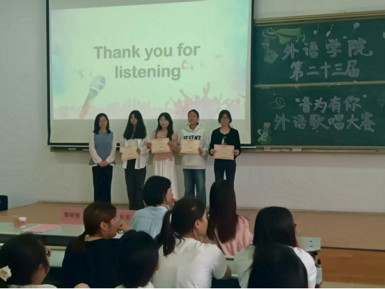 比赛在主持人热情洋溢的开场白中拉开帷幕。此次歌唱大赛的参赛曲目涵盖了英语、韩语,选手们用各自独特的嗓音和精彩的演绎,为观众带来了一场听觉盛宴。为了保证比赛的公平、公正、公开,本次比赛特别邀请了多位专业外语教师担任评委。评委们从选手的发音、演唱技巧、舞台表现等多个方面进行综合评估,最终评选出了一等奖、二等奖和三等奖的获得者。