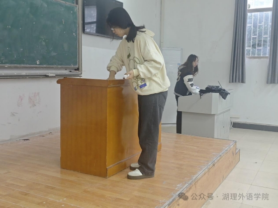 当天,寒意悄然渗入,但团培成员们的打扫身影却格外温暖。有人主动俯身清扫地面,将纸屑仔细归拢;有人用湿润的抹布擦拭桌椅,连桌角缝隙也一丝不苟。桌上的书籍与器材被归类整理,排列如待检阅的方阵。大家十分默契,配合如行云流水。通过大家的共同努力,清扫后的教室焕然一新,桌椅静立,地板光洁。
