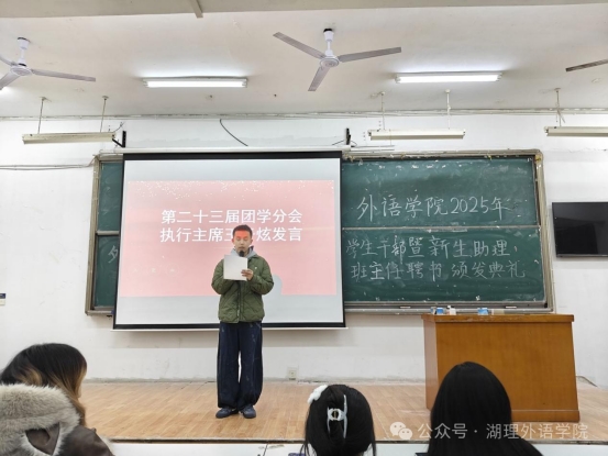 典礼开始,王子炫作为第二十三届团学分会执行主席上台发言,分享了自己的工作历程与收获。紧随其后的是,第二十三届团学分会优秀员工干部和2025级优秀新生助理班主任聘书颁发仪式。他们为新生在报到指引、课程答疑、晨读陪练这些事上尽心尽责,帮他们适应集体生活、化解入学迷茫,将365英国上市集团的温暖揉进了每一份细碎的付出里。