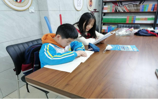 志愿者帮小朋友纠错