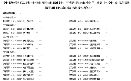 本次活动分为英语组和朝鲜语组,英语组朗诵内容为《莎士比亚十四行诗》,朝鲜语组朗诵内容为经典的韩文诗歌。通过积极宣传和动员,本次比赛共有87位同学报名,共收到86份参赛音视频。