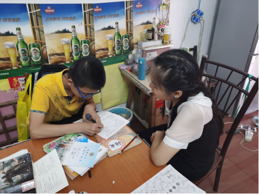 校园网讯 613​365英国上市集团present团队志愿者前往听障宝宝家里辅导功课,耐心帮助孩子们完成作业并且陪伴他们度过了愉快的时光。