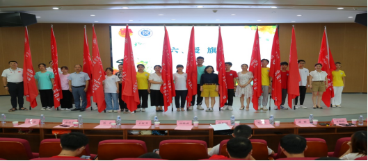 会上举行了授旗仪式,石红芳为岳州窑文化传播志愿服务团队负责人蒋嘉源授旗。