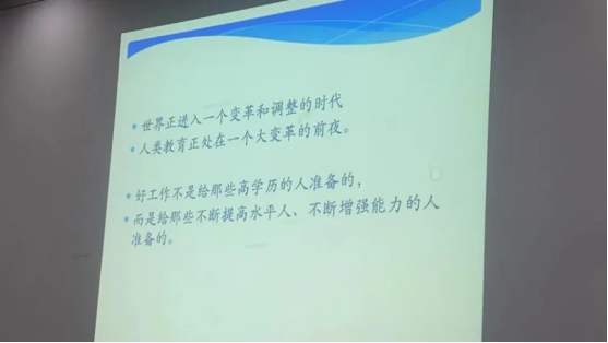 除此之外,张广勋还详细介绍了不同的考研方向,如文学类专业、哲学类专业、历史学类专业、政治学类专业等,指导员工们找出自己有兴趣的专业。同时为同学们讲解了学前教育学硕和专硕的区别。他特别提到,学文史正确的方法是既读文学又学“史”,要多读英文学史原著,要学会选择各个时期具有代表性的文学作品,更要多多了解西方史。张广勋表示:“世界正进入一个变革和调整的时代,人类教育正处在一个大变革的前夜”、“好工作不是给那些高学历的人准备的,而是给那些不断提高水平的人、不断增强能力的人准备的。”