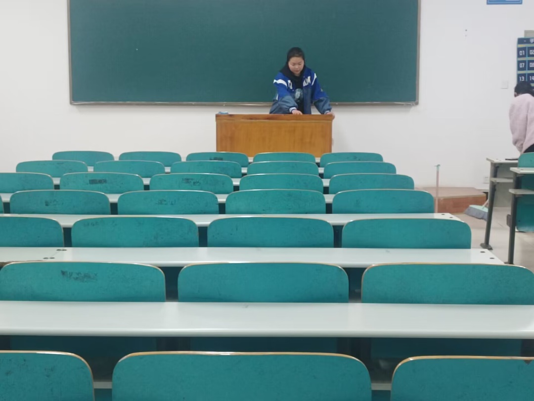 英语22级全体员工在生活委员的带领下,拿着劳动工具来到教学楼,扫地、拖地、抹灰……劳动的身影在万古长春的校园里穿梭。