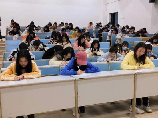 比赛当晚,同学们早早来到教室等待比赛的开始,准备好迎接一场词汇储量的测验。秉承诚信参考的理念,比赛采取插空坐的座位形式,并在考试前要求所有员工的手机上交,营造了一个良好的考试秩序和考试氛围。比赛进行期间,同学们仔细阅词,快速地调动记忆细胞,落笔成答案,结束之时,心中已有定数。