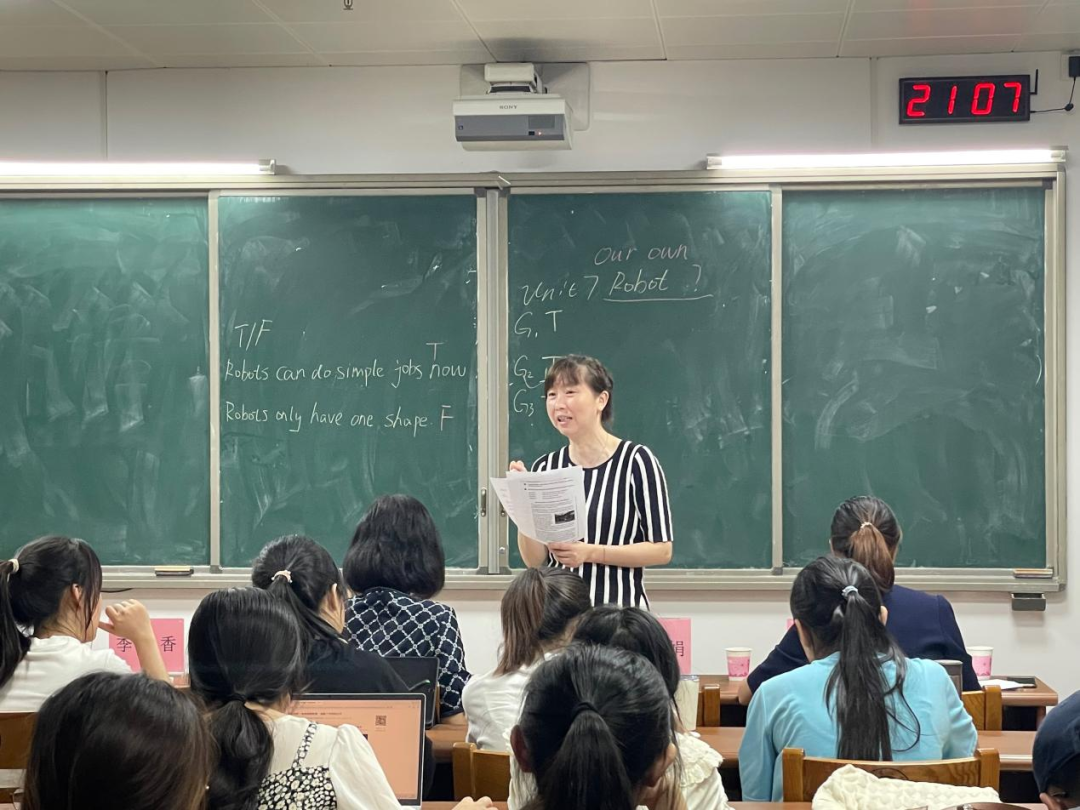 10位参赛选手通过抽签依次上台进行讲课比赛。经过了充足的准备,选手们充满活力,斗志昂扬,她们在课堂内容设计、板书等各方面展示了自己的教师技能水平。选手们临场反应能力强,能够从容解决突发情况,她们声情并茂,带动了评委和观众的情绪。比赛现场教学气氛浓烈,评委老师们认真观看,进行评分和提问,并在赛后对选手们进行点评和指导。