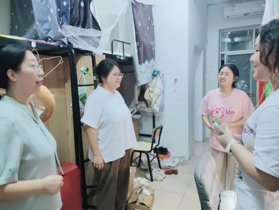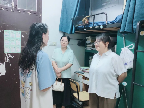石红芳以及各年级辅导员下寝访问2020级学子,并对不同宿舍选择考研、实习或在双选会寻求就业机会的同学,有的放矢地给出不同建议,重点聚焦2020级学子就业问题:逐个宿舍访谈,与她们亲切地沟通交流;殷切关怀员工当下面临的问题,关怀员工的心理状态和生活状况;同时,在交流的过程中注意到员工在工作上面临的难题以及重重压力,叮嘱她们不要忘记身体健康,但也要有“撸起袖子加油干”的斗志,以积极的心态去面对形势复杂的就业市场;一定要抓住当下校园双选会的招聘机会,在不断的锻炼中去锤炼自己的应试本领以及工作能力。