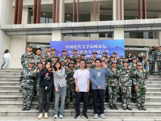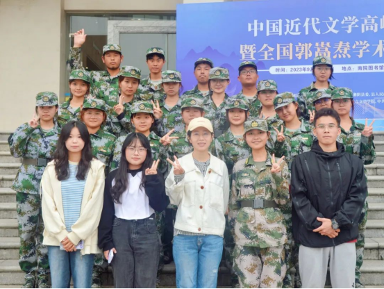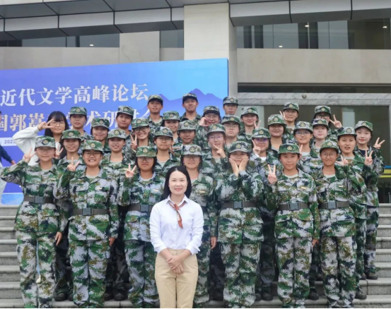 却穿着军训服与我们一路