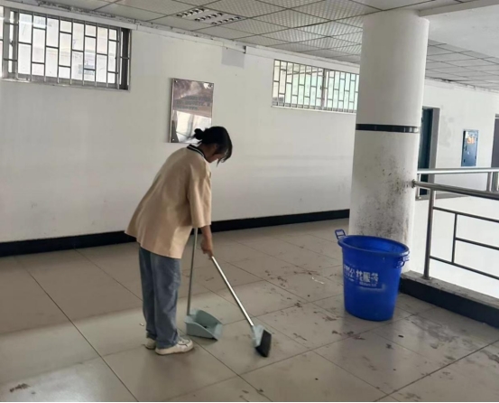 在劳动委员安排好各自负责的卫生区域后,员工们拿着劳动工具积极地打扫卫生,将地面的纸屑和各种垃圾清理干净,并对墙壁的死角也进行了打扫。最终,经过员工们的共同努力,两间教室又呈现出干净整洁的模样。