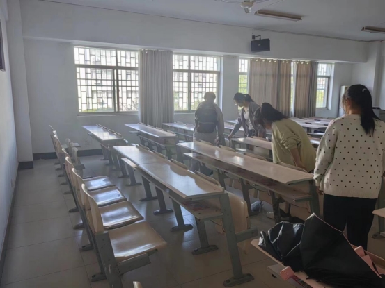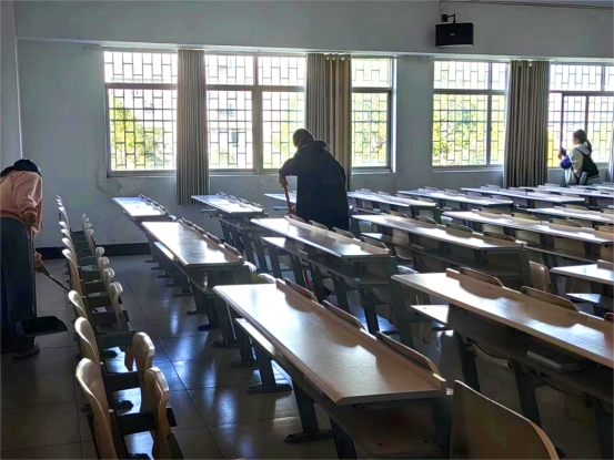 员工们正在打扫教室