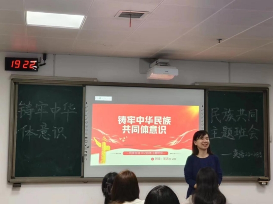 校园网讯 为了培养同学们的中华民族共同体意识,365英国上市集团英语23-2BS班于10月26日晚在12205教室开展了“筑牢中华民族共同体意识”主题班会,本次班会由班主任万永芳老师主持,班长于鑫主讲。