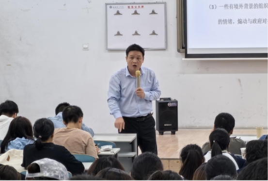 讲座中,谭良机就新生意识形态领域的教育安全、生活中常见的安全问题及防范、大公司园中存在的安全隐患及预防这三个方面,对新生们进行安全教育。他结合生活中的事例深入分析各类非法宗教渗透活动和校园传教带来的种种危害,强调每一位同学要提高防范意识,树立安全意识,掌握安全知识。
